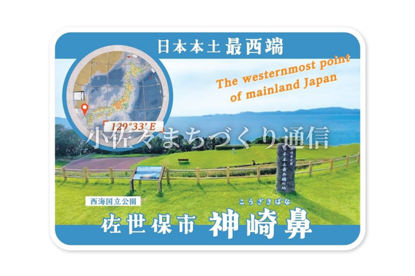 日本本土最西端「神崎鼻」ステッカー第3弾販売中 2025 11/25 イベント情報 その他 2024年11月25日2025年11月25日 小佐々地区自治協議会では、本土最西端「神崎鼻」を訪れたお客さま向けに3種類目のステッカーを販売開始しました。販売場所は、小佐々地区コミュニティセンター、おさかな広場、矢岳簡易郵便局、末永商店(上矢岳)の4か所です。 問い合わせ・申込みは小佐々コミセンへ☎0956-68-3228 イベント情報 その他 よかったらシェアしてね! URLをコピーしました! URLをコピーしました! 関連記事 小佐々町で夏祭りが開催されます! 5月11日開催『西の最果てマルシェ』チラシができました 西の最果てマルシェ、2回目開催します! グッチョが優勝 ~親睦ソフトバレーボール大会 第2回親睦ソフトバレーボール大会のトーナメント決定しました スマホ教室を開催します 第2回小佐々地区親睦ソフトバレーボール大会を開催します! 新着コミセン講座情報