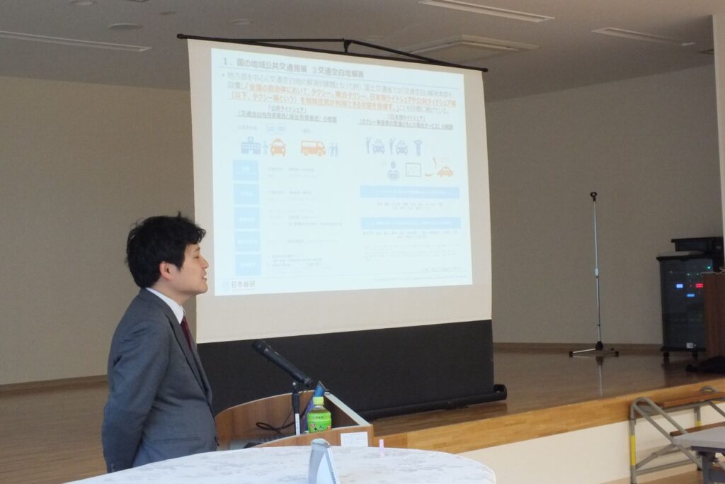 3月11日、小佐々地区コミュニティセンターにて、株式会社日本総合研究所の研究員である大野木洋輔さんを講師に招き、「小佐々地区の交通をどう確保するか」をテーマに研修会が開催されました。