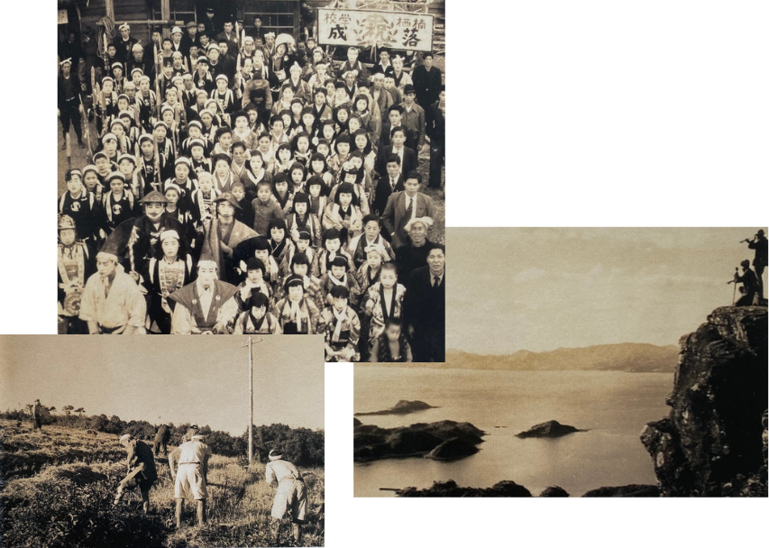 戦後間もない昭和22年、楠泊中学校が開校し、開校式には生徒たちが忠臣蔵を演じるなど、学び舎の新たな門出を地域一丸で祝いました。また、戦後の農民救済策として岳ノ木場で茶園開発が始まり、山林を開墾して新たな農業基盤が築かれていきます。
