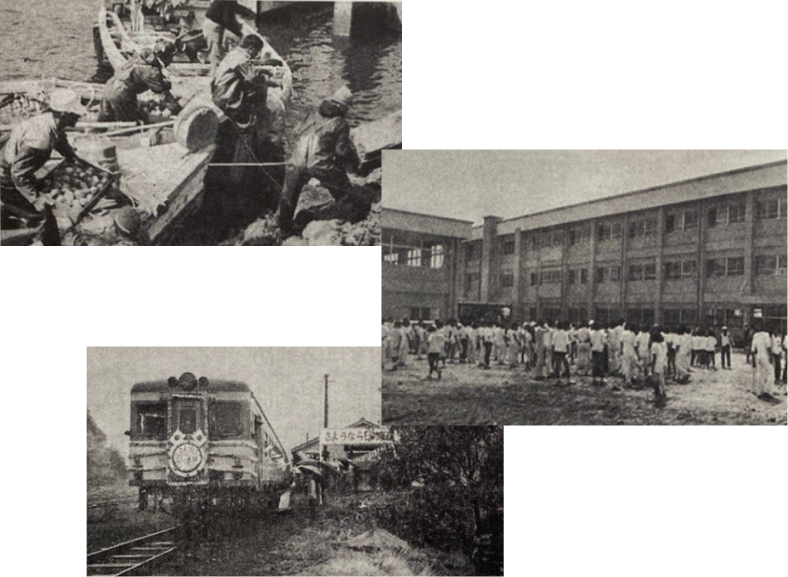 昭和42年には集中豪雨による大水害が発生し、土砂崩れなどで町内に7億円近い被害を出しました。一方で、産業は大きな発展を遂げます。昭和44年には鳥貝の豊漁があり、1か月で2,500万円もの水揚げを記録。町の財政を大きく潤しました。