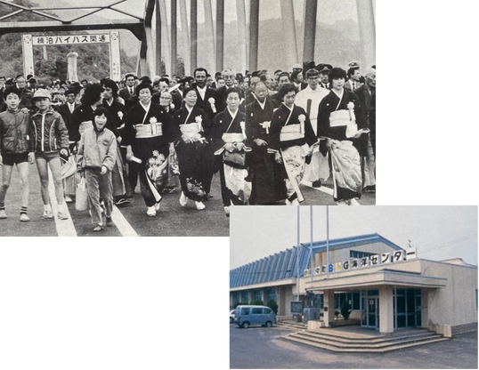 昭和51年から59年にかけて楠泊バイパスが完成し、交通の便が飛躍的に改善されました。昭和55年には第一回冷水岳春まつりが開催され、2万人もの人々が訪れる大イベントに。町公民館も同年に完成し、文化活動や生涯学習の拠点となります。