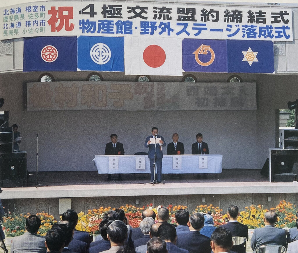 平成元年に町歌「海光るまち」が完成し、歌を通して町の一体感が育まれました。平成3年昭和63年5月3日、「冷水岳春まつり」にあわせて北海道標津町・富山県福岡町・長崎県小佐々町・沖縄県勝連町の4町が相互交流を目的に四極交流盟約を結びました。