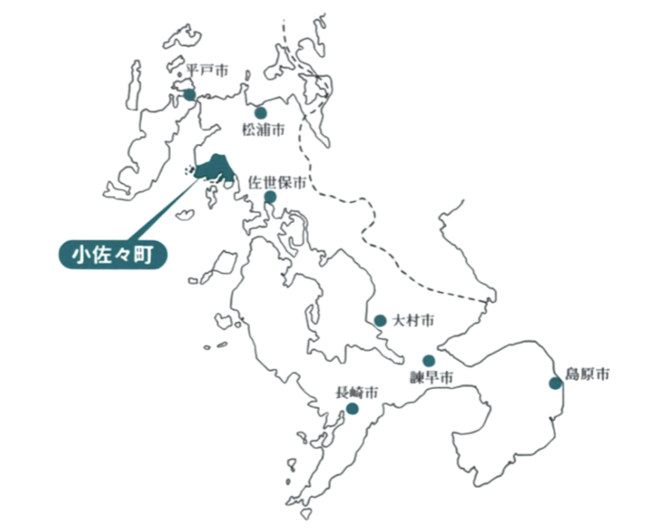 鎌倉から江戸自体にかけて、松浦党や平戸藩に属し、その後明治11年に小佐々村として北松浦郡に編入されました。江戸末期に開発された大瀬炭鉱をはじめとする石炭産業により、町政を施行した昭和25年ごろには人口約1万6千人を数えましたが、昭和36年から37年にかけてエネルギー改革の余波を受け、人口も激減しました。その後昭和45年ごろからイリコ(煮干し)の乾燥機による加工が始まり、県下でも有数の漁業の町となる一方、平成2年には小佐々工業団地が完売、翌平成3年には24社の優良企業が出揃い操業しており、現在では人口は横ばい傾向にあります。平成18年3月31日に佐世保市へと編入されました。