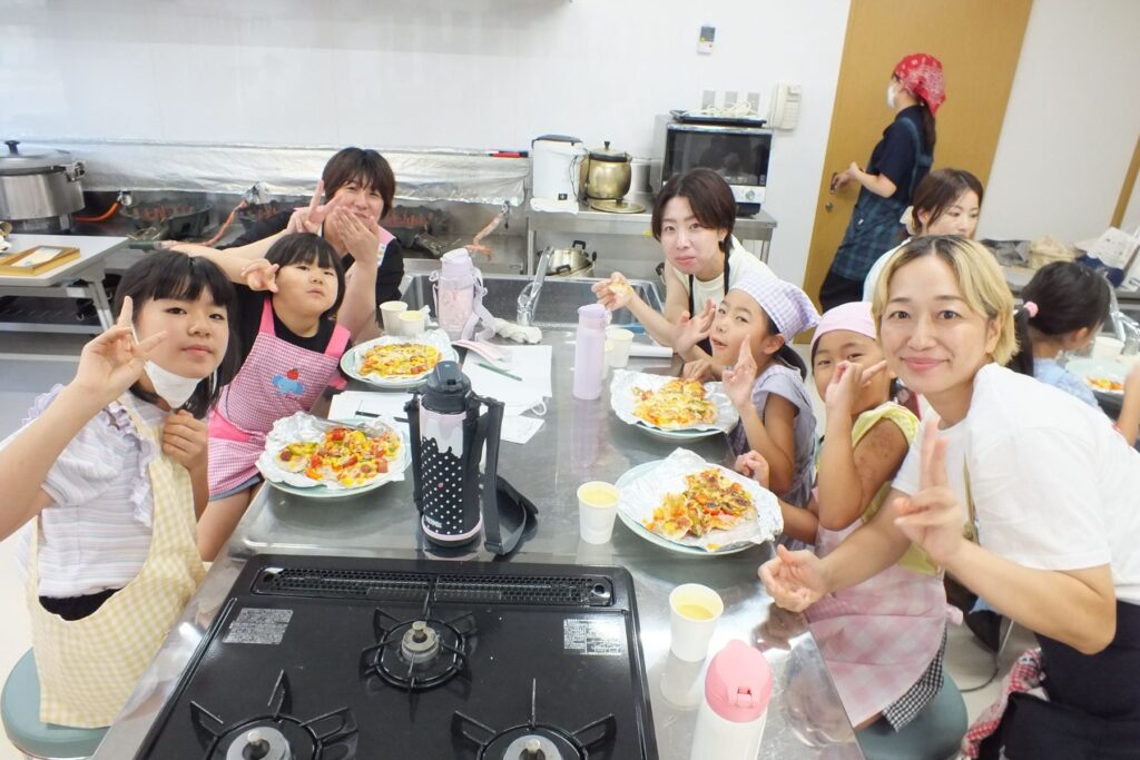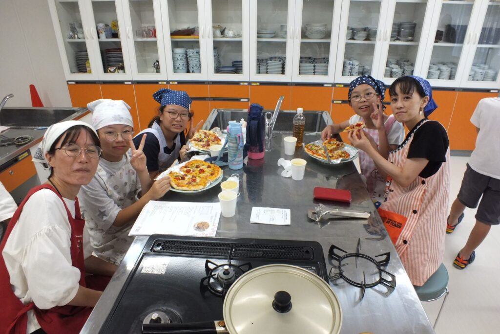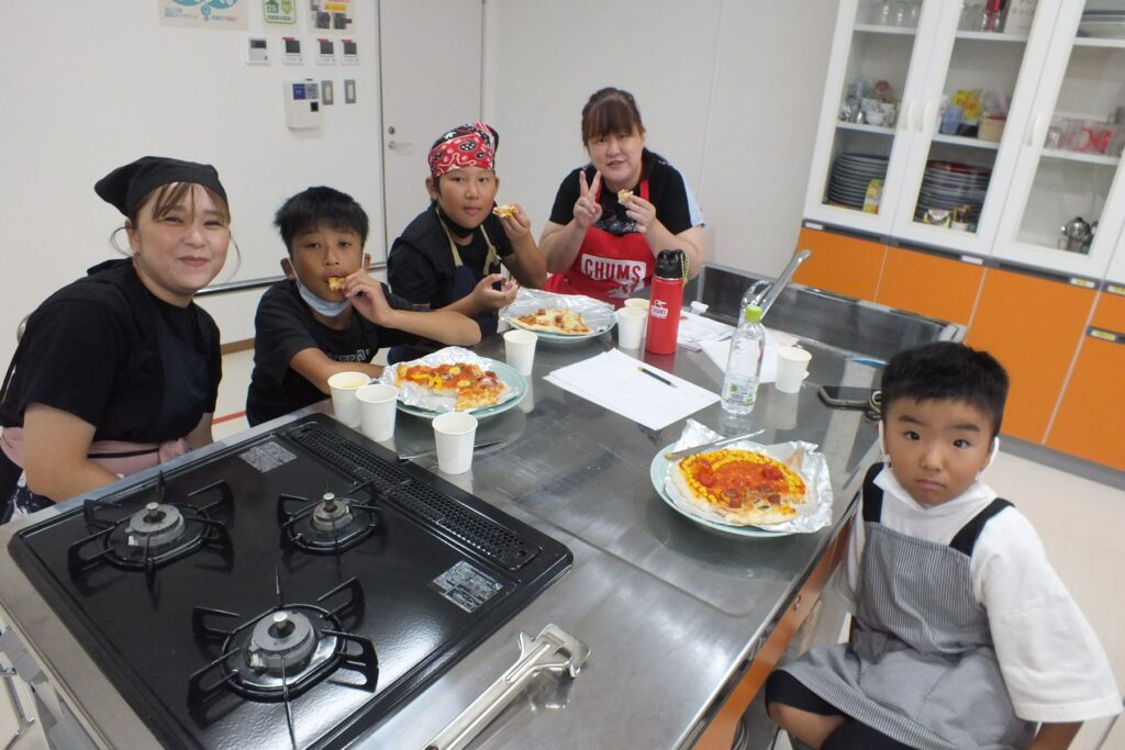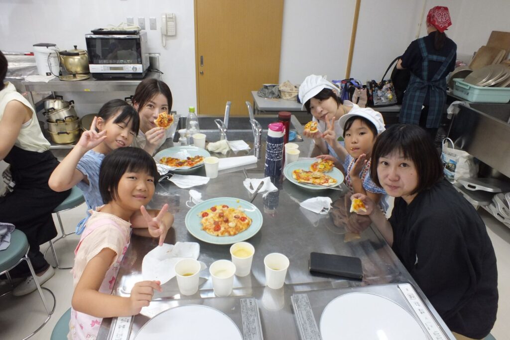 8月7日、小佐々地区コミュニティセンターで、米粉を使ったビザづくり教室が行われました。町内から小学生とその保護者計11組が参加、生地づくりからトッピング、焼き上げまでの一連の作業を親子で協力して調理していました。できあがったピザの味は格別のおいしさのようでした。